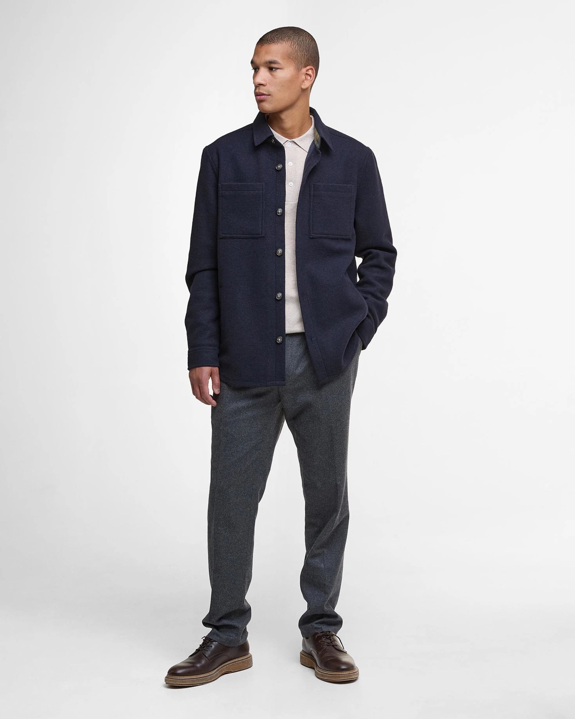 The Barbour Marlow Tailored Overshirt is where practicality meets effortless style. Crafted from a cosy wool blend, it features a button-through design, two chest patch pockets, and handy side welt pockets. The tartan trim inside the collar adds a classic Barbour touch. Perfect as a lightweight jacket or smart layering piece, it’s ready for wherever your day takes you.