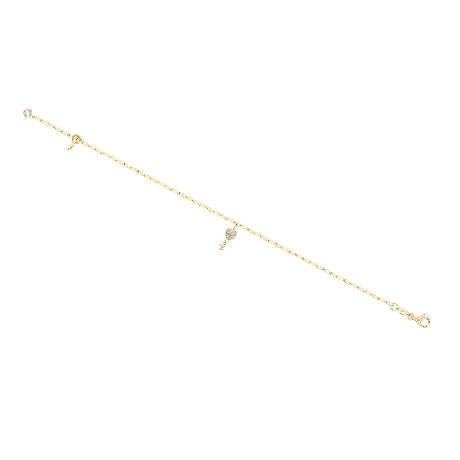 This elegant bracelet captures the essence of meaningful connection through its thoughtfully designed heart-shaped key charm suspended from a contemporary paperclip chain. Crafted in sterling silver with luxurious gold plating, the piece features Lafonn's renowned Lassaire simulated diamonds that deliver brilliant sparkle without compromise. The minimalist aesthetic makes it versatile enough for everyday wear while the symbolic key design speaks to themes of love, commitment, and fresh starts. Perfect for gifting or personal indulgence, this bracelet seamlessly transitions from casual to refined occasions.