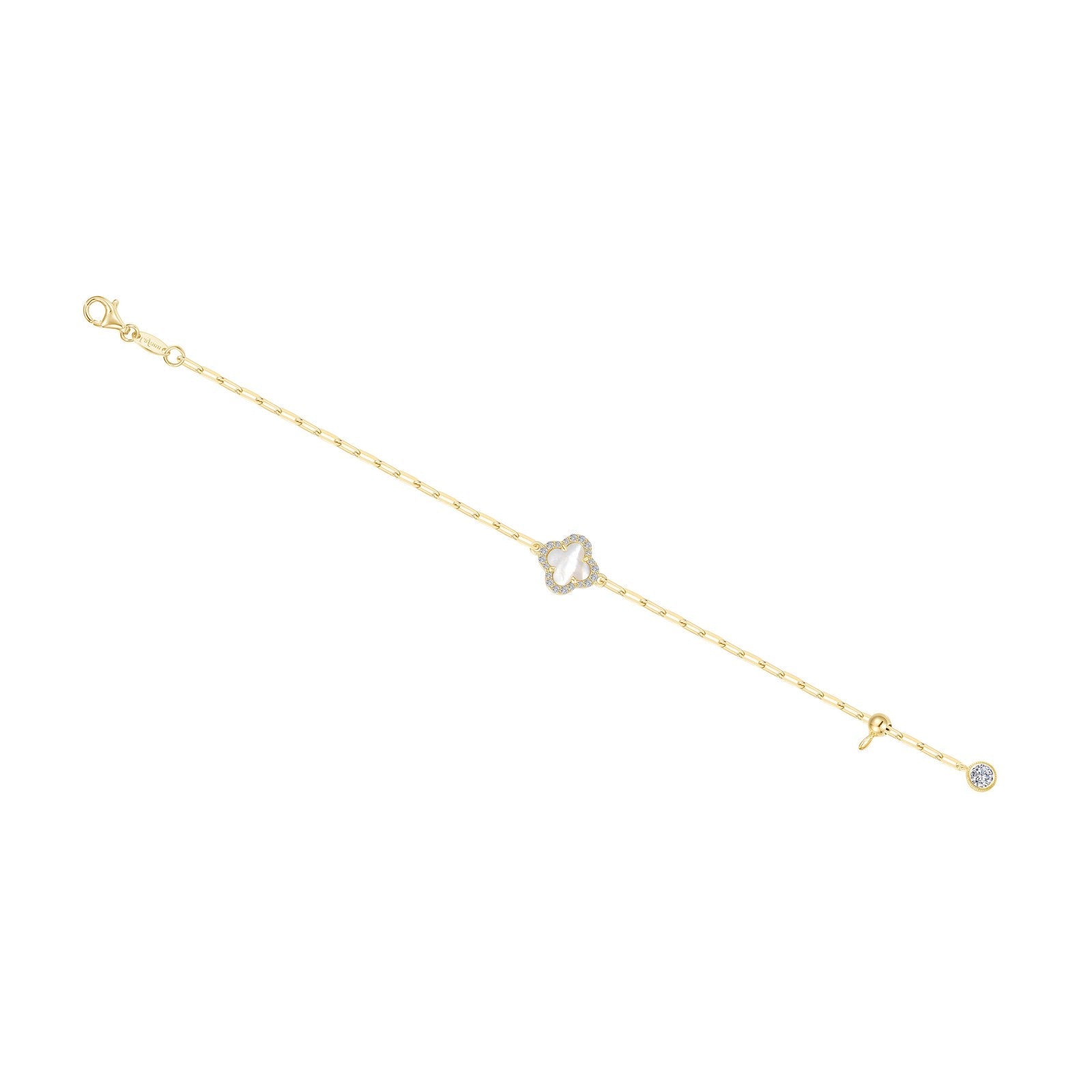 • Mother-Of-Pearl Clover Paperclip Chain Bracelet - Gold