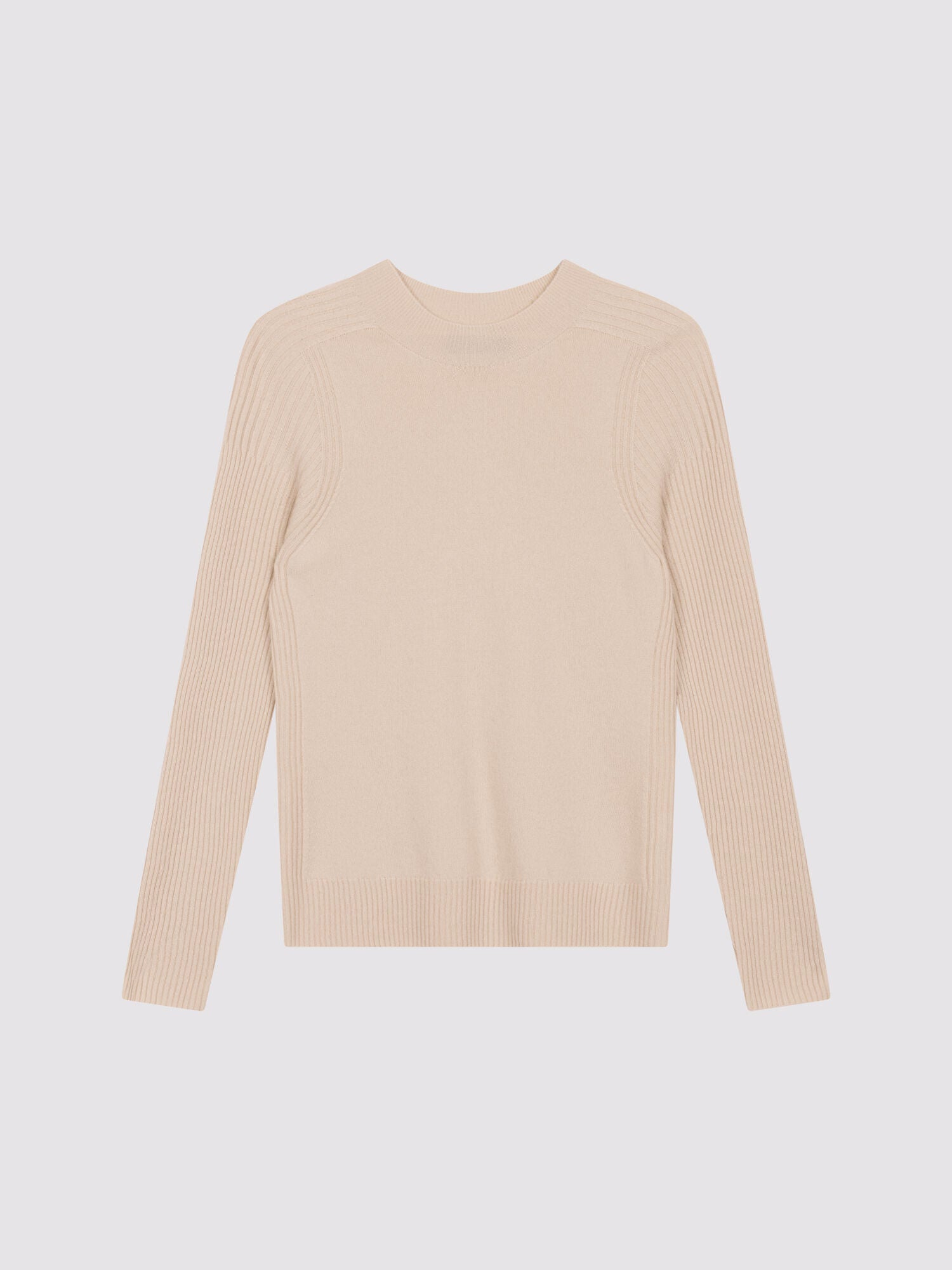 This lightweight, fine-knit pullover combines 90% wool with 10% organic cashmere, certified by OCS for sustainable quality. Designed with a ribbed mock neck, hem, and side seam details, it offers a body-hugging fit that contours naturally. The long sleeves and straight knit enhance comfort and versatility, making it an ideal layering piece. Gentle care is recommended with hand washing or dry cleaning to maintain its softness and shape. The sweater measures 44 cm in width and 60 cm in length, providing a tailored yet comfortable silhouette.