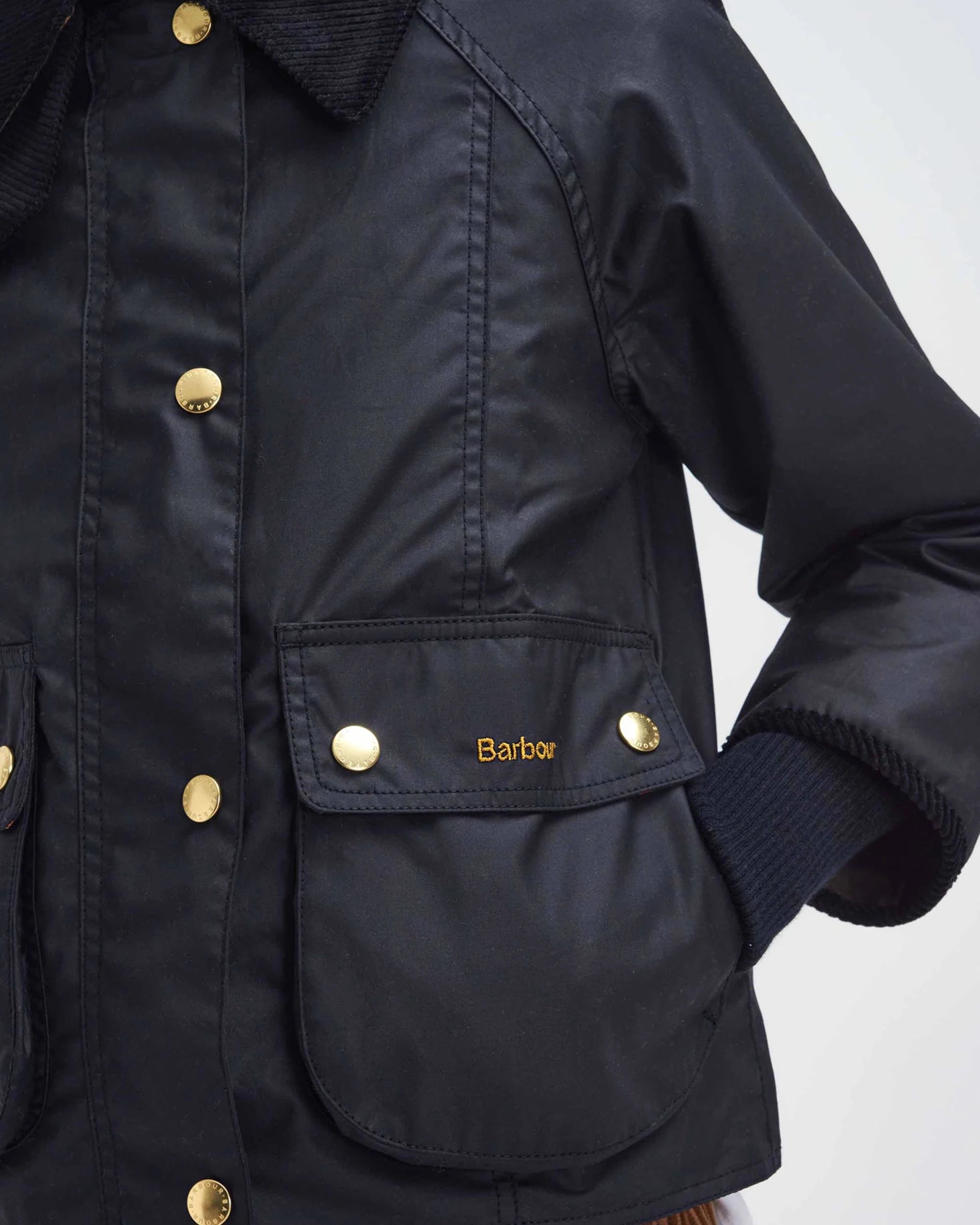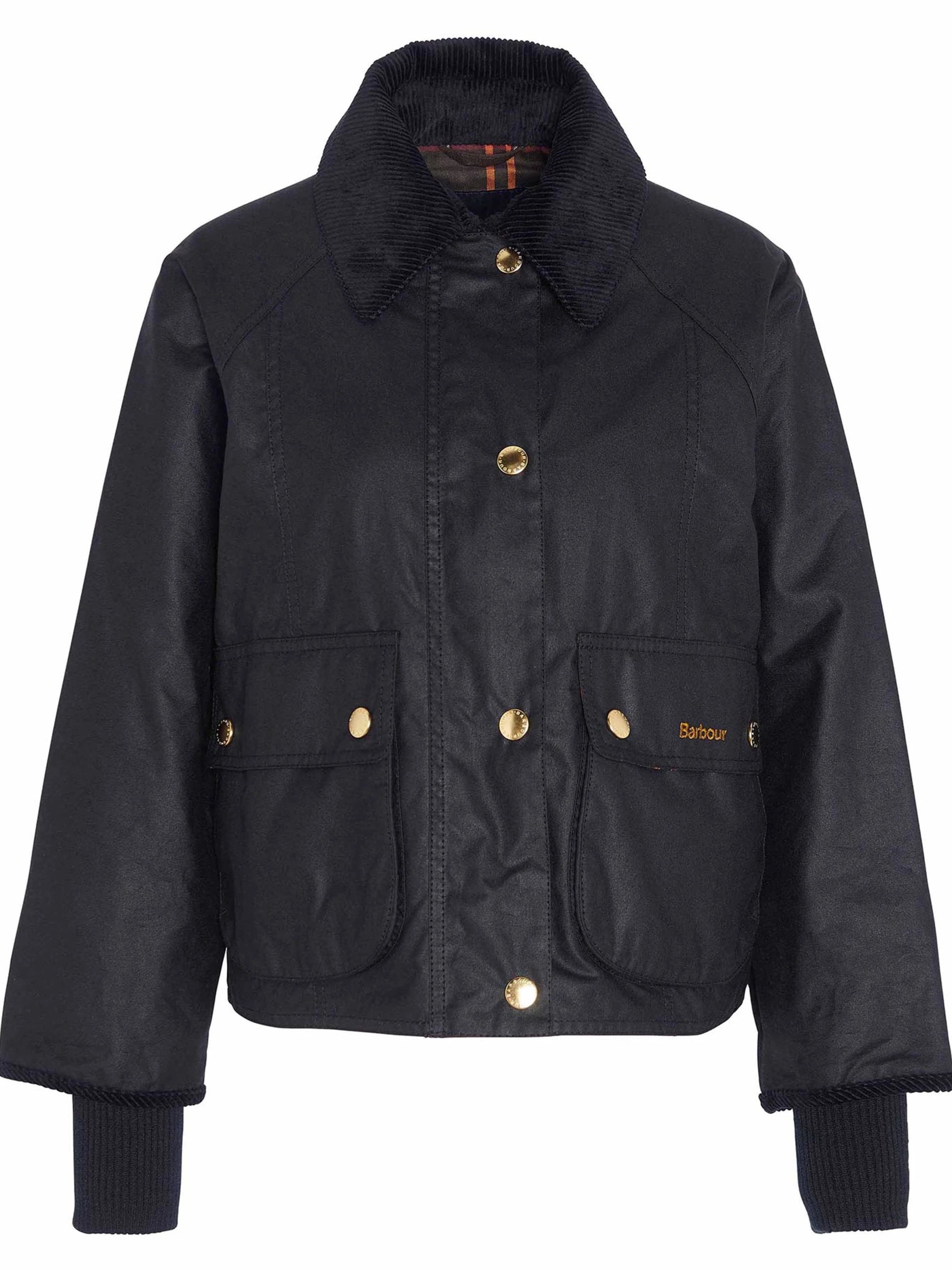 The Beadnell waxed jacket has been a part of Barbour's signature waxed jacket selection since 2010, offering a feminine, tailored rendition of the best-selling men's Bedale waxed jacket to the collection. This season, the Beadnell takes on a modern new look as the Barbour Cropped Beadnell Waxed Jacket displays oversized details featured on the original style. With large, gold-tone, branded snap buttons and the traditional saddle pockets, this style is complete with a cord collar and exaggerated elasticated cuffs for a contemporary touch.